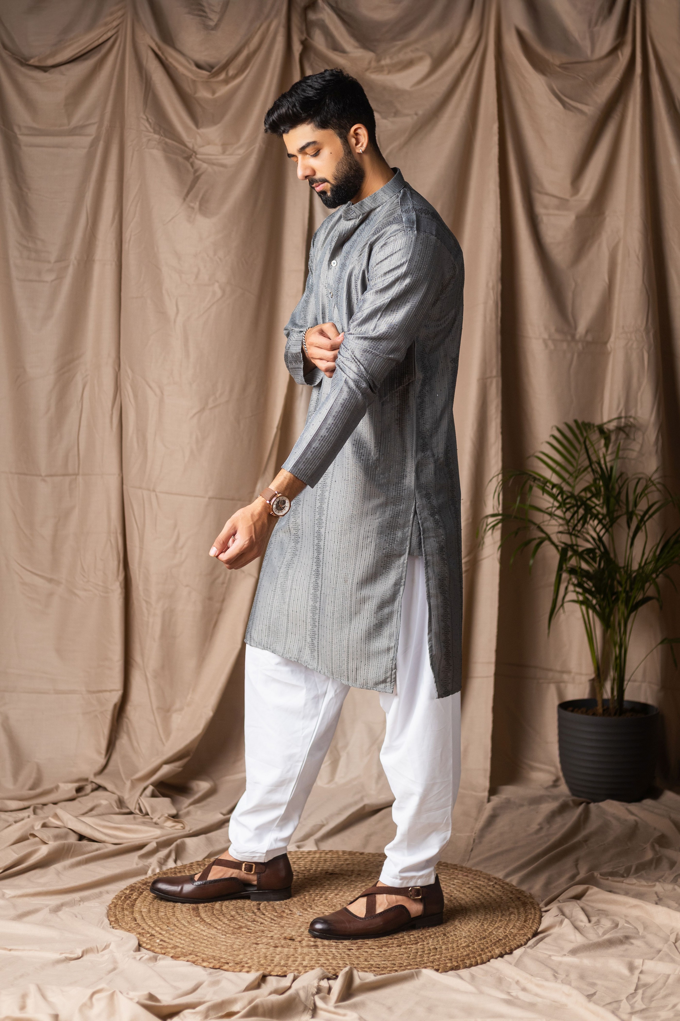 Grey Color Rayon Fabric Festive Wear Ethnic Men's Embroidered Kurta Payjama