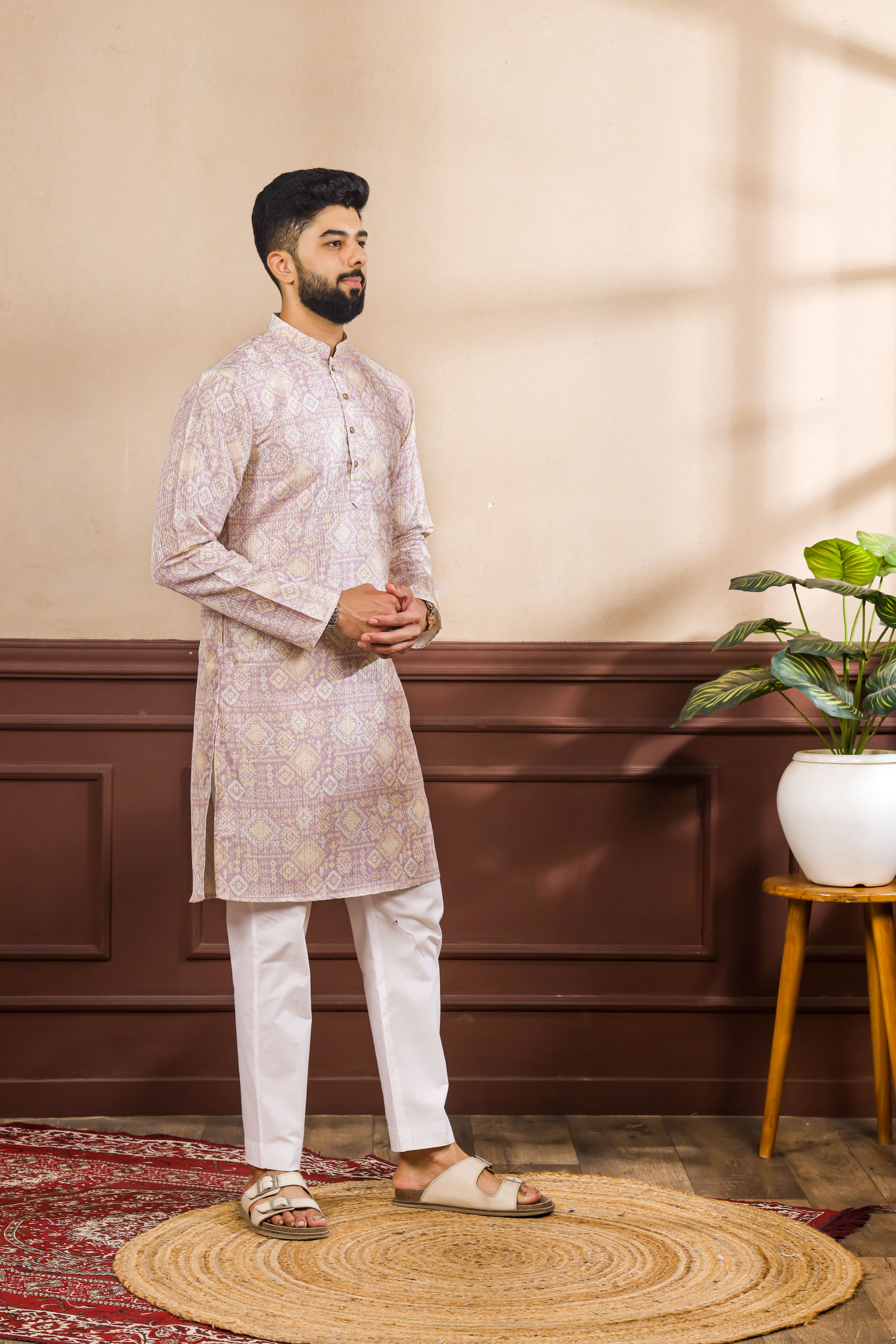 Lavender Color Beautiful Art Silk Fabric Smart Print Designer Kurta Payjama