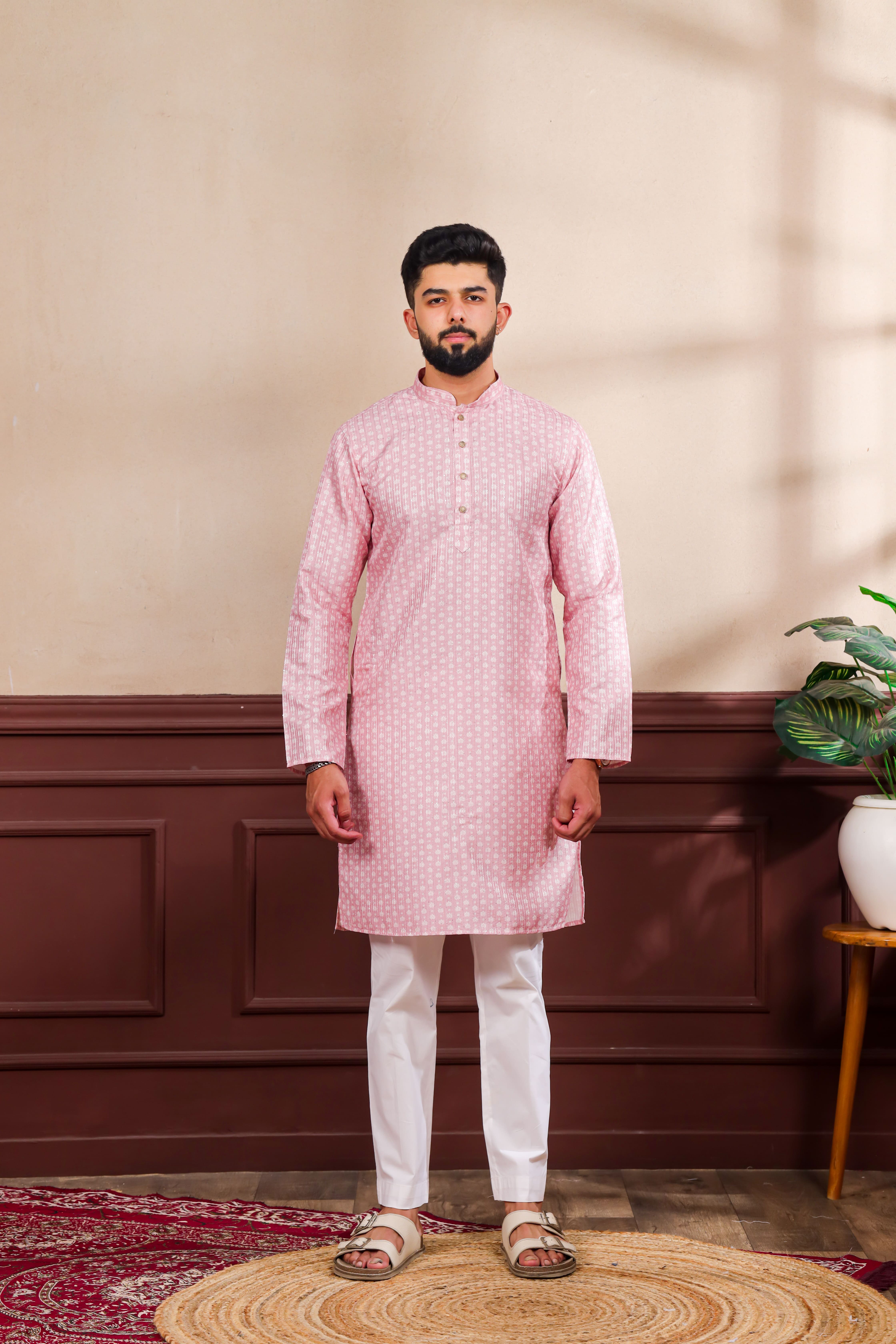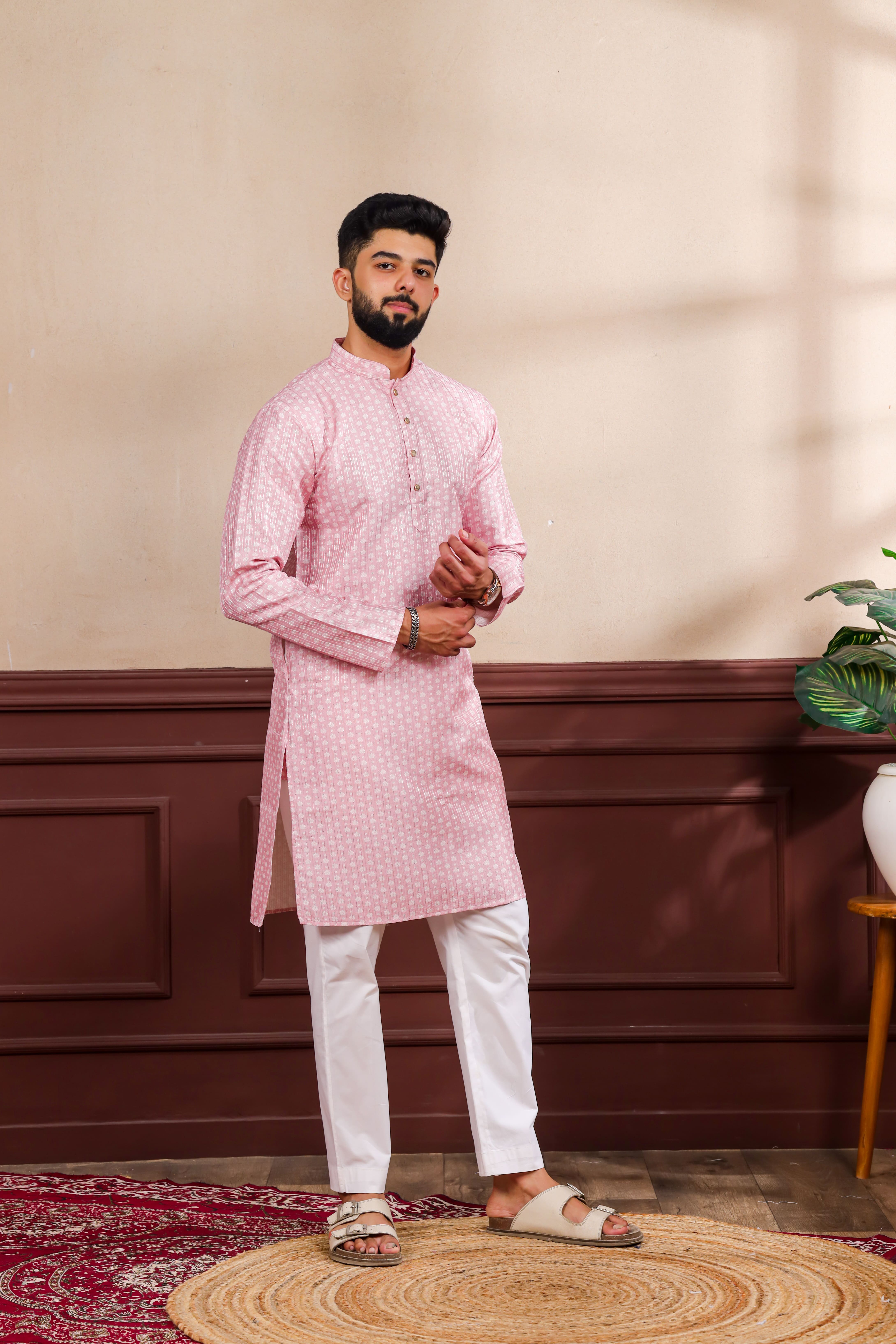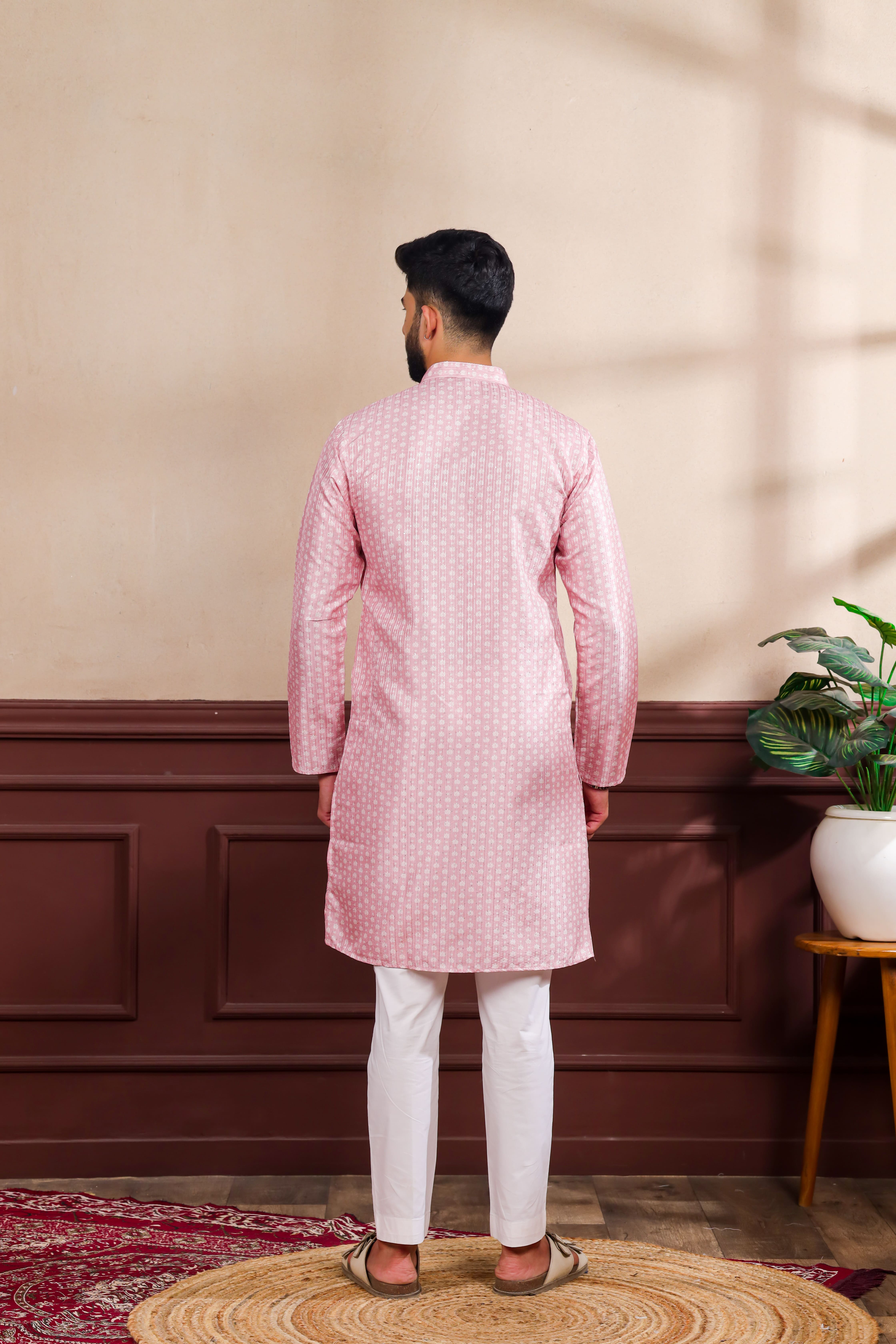 Pink Color Beautiful Art Silk Fabric Smart Print Designer Kurta Payjama