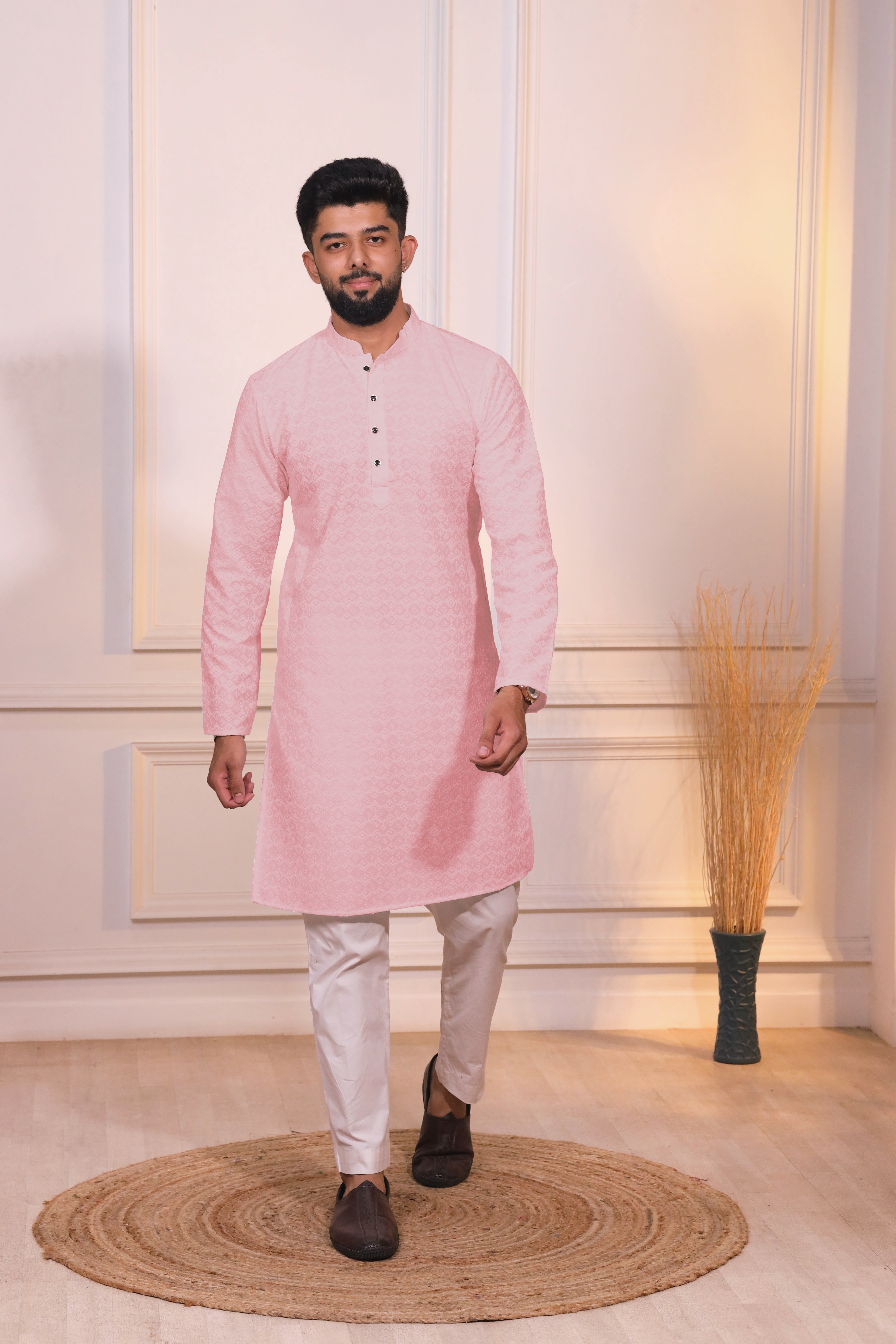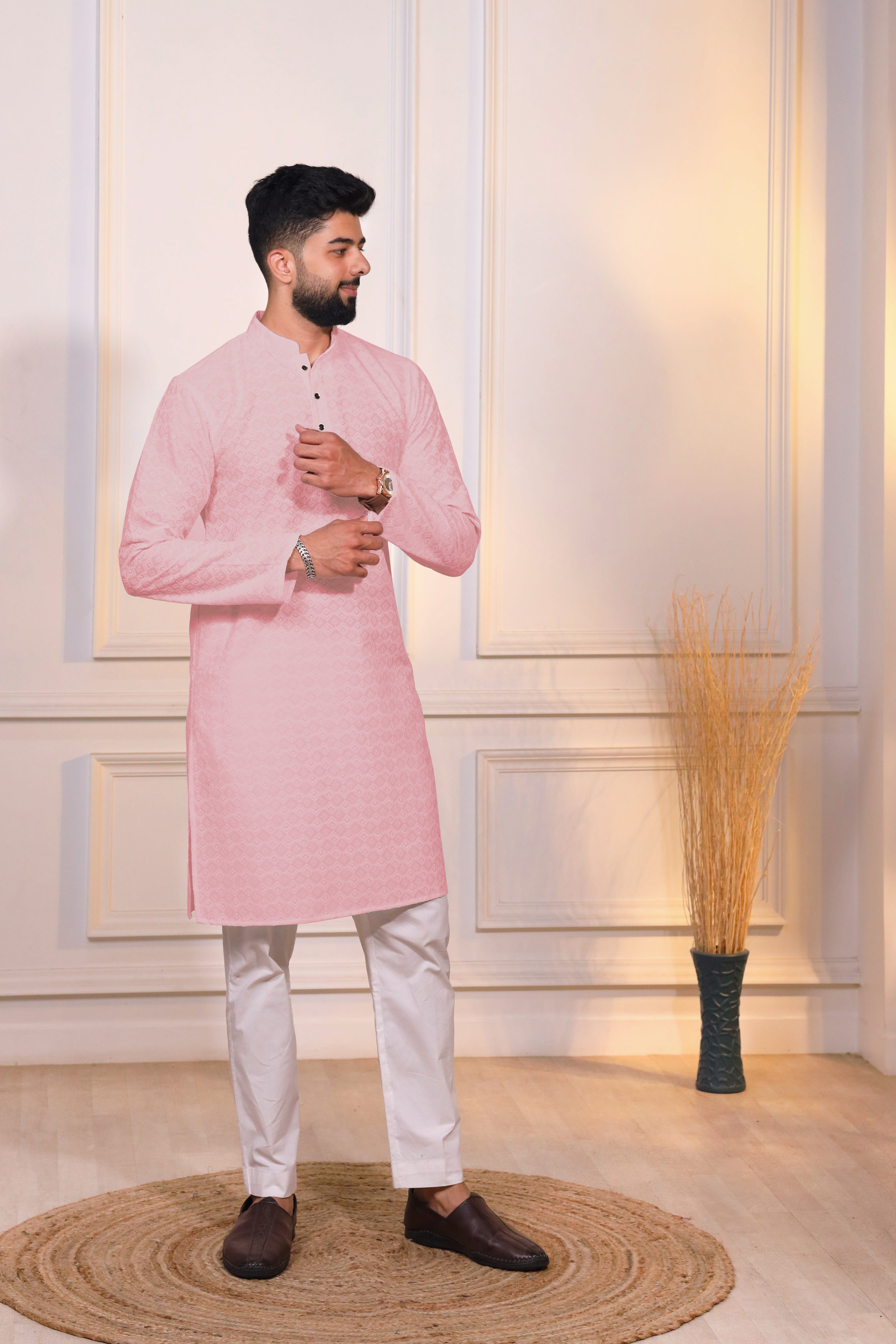 Pink Color Designer Embroidery Work Ceremonial Ethnic Kurta Payjama For Men's