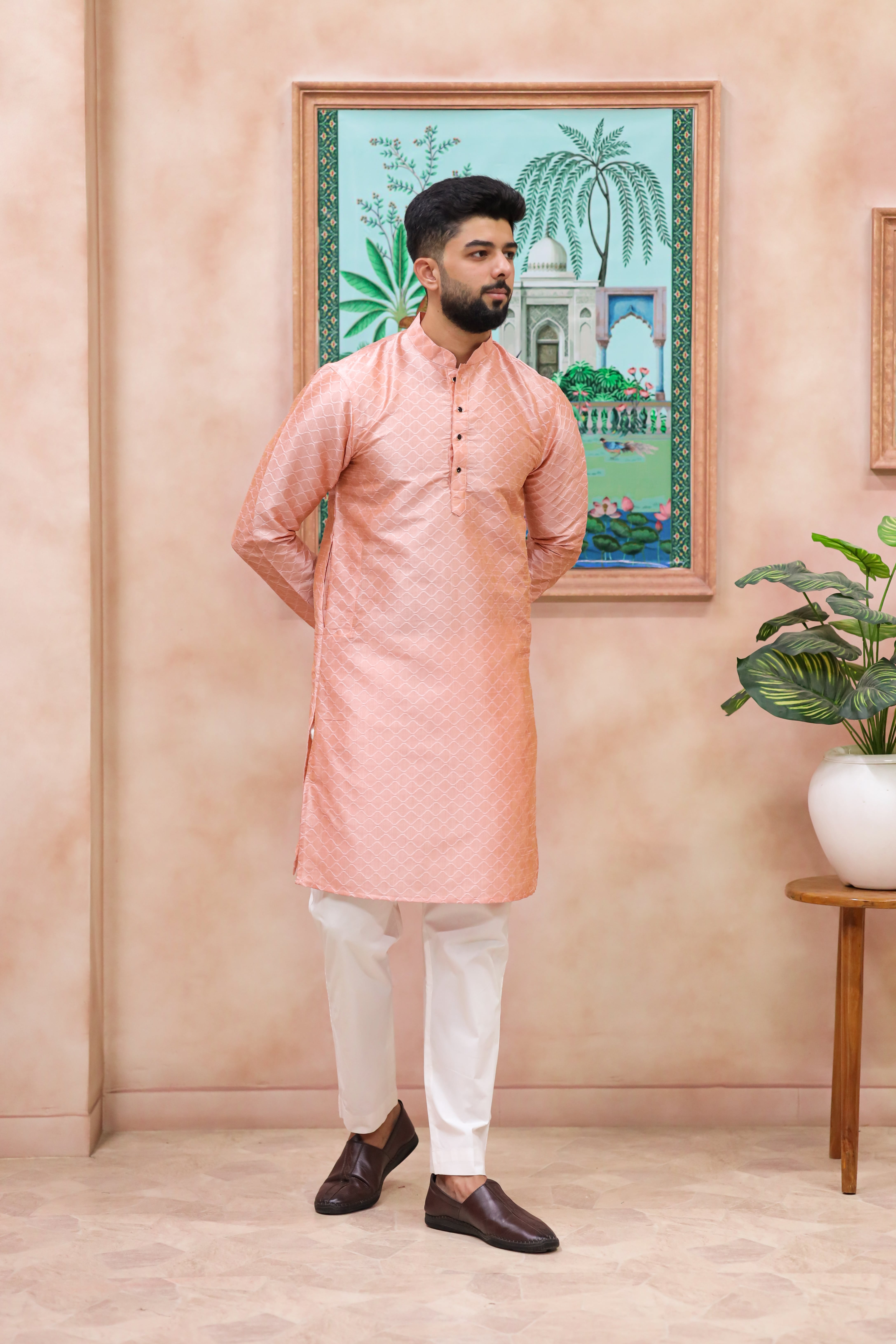 Pink Color Graceful Partywear Kurta Payjama For Mens Ceremonial Looks