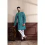 Rama Color Ethnic Woven Patta With Digital Printed Ceremonial Kurta Payjama For Men's