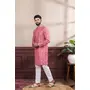Red Color Ethnic Woven Patta With Digital Printed Ceremonial Kurta Payjama For Men's
