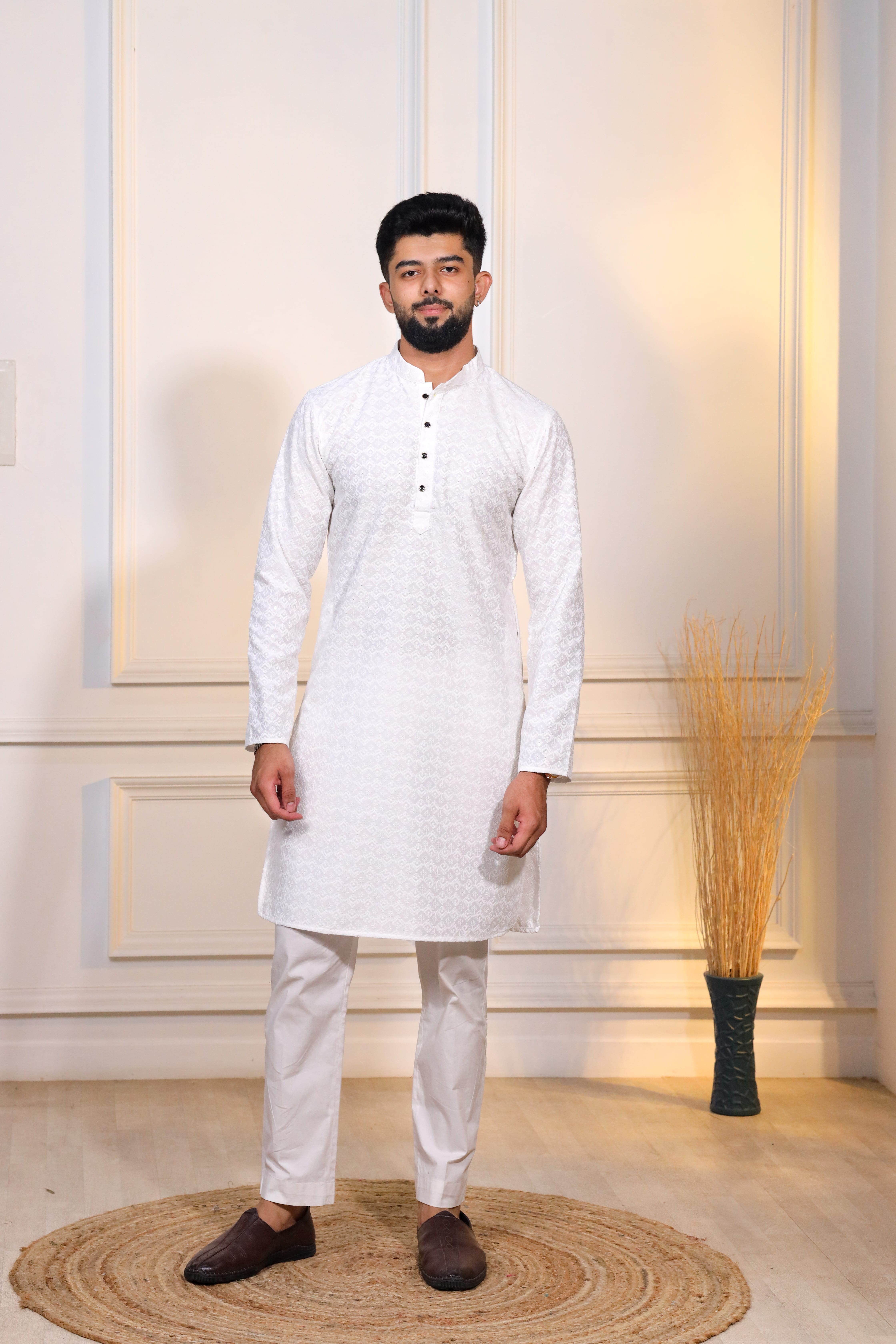 White Color Designer Embroidery Work Ceremonial Ethnic Kurta Payjama For Men's