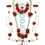 If you are searching for flower jewellery then you are at the right place. We offers a wide collection flower jewellery. This orange-white combination set is one of the jewellery pieces from Anuradha Art Jewellery. It woven with good quality pearl beads & orange flower. This necklace set is best pick for pre-wedding event such as âhaldiâ & also for baby shower. It consists of necklace pair of matching earrings maang tika single bajuband and pair of hath-phool. So order now!