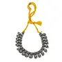 Oxidised silver single line beaded choker with thin silk dori drawstring of Yellow colour. This necklace could wear as collar cum choker. As per you desire you can tight or loosed the drawstring to give it a look of collar or choker. Flaunt your looks with this traditional ethnic necklaces on festivals | weddings | poojan. It goes well with any dresses