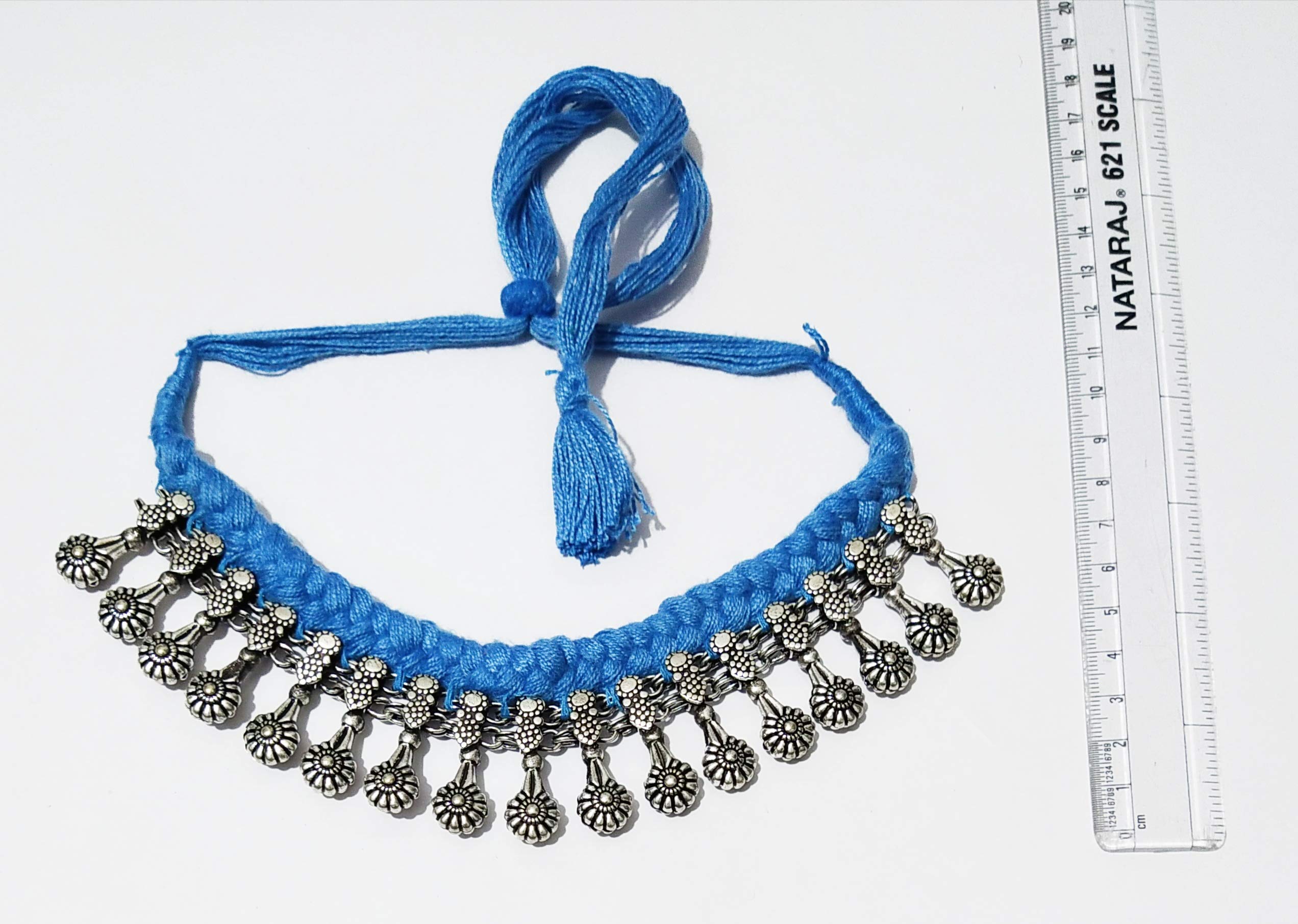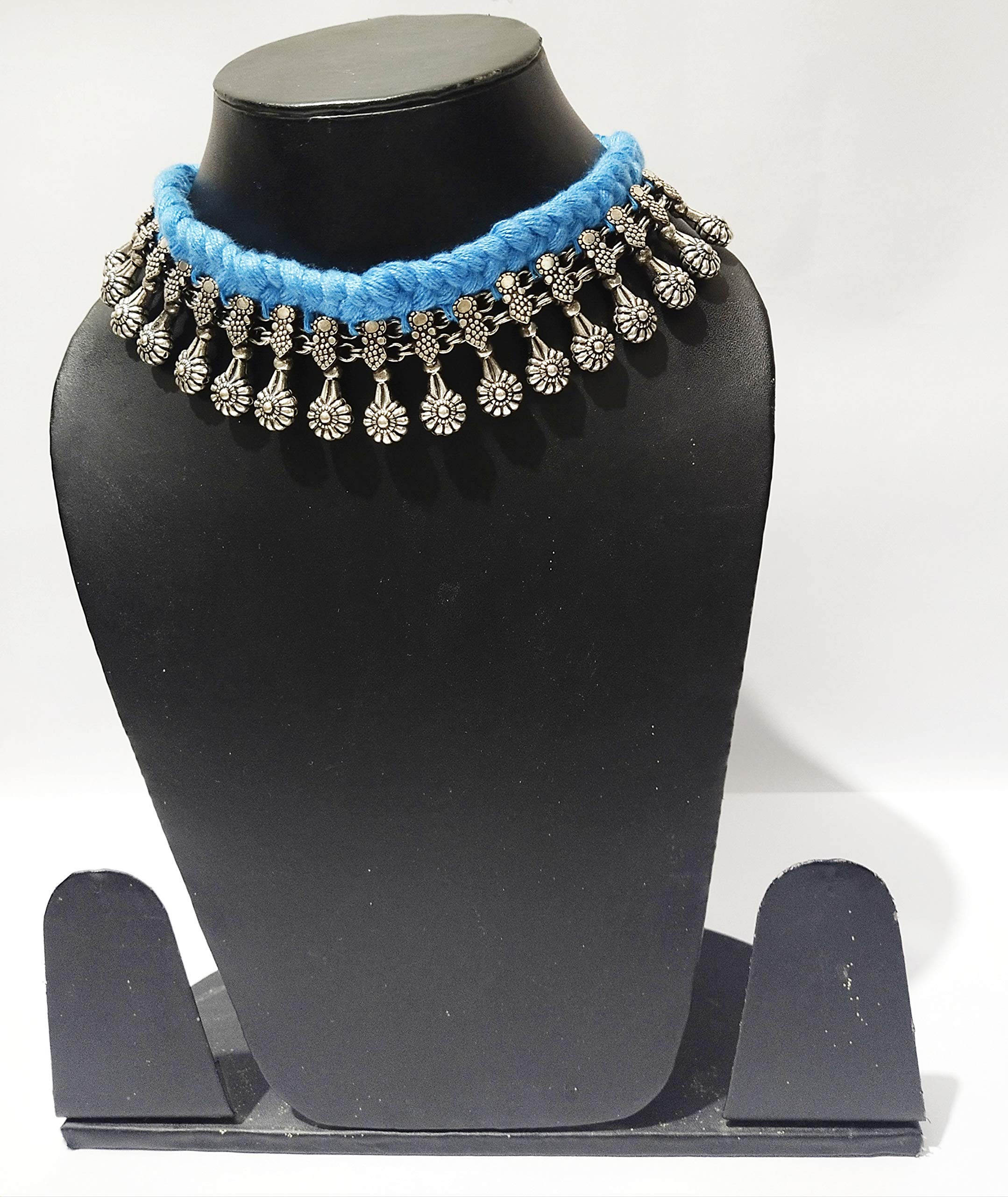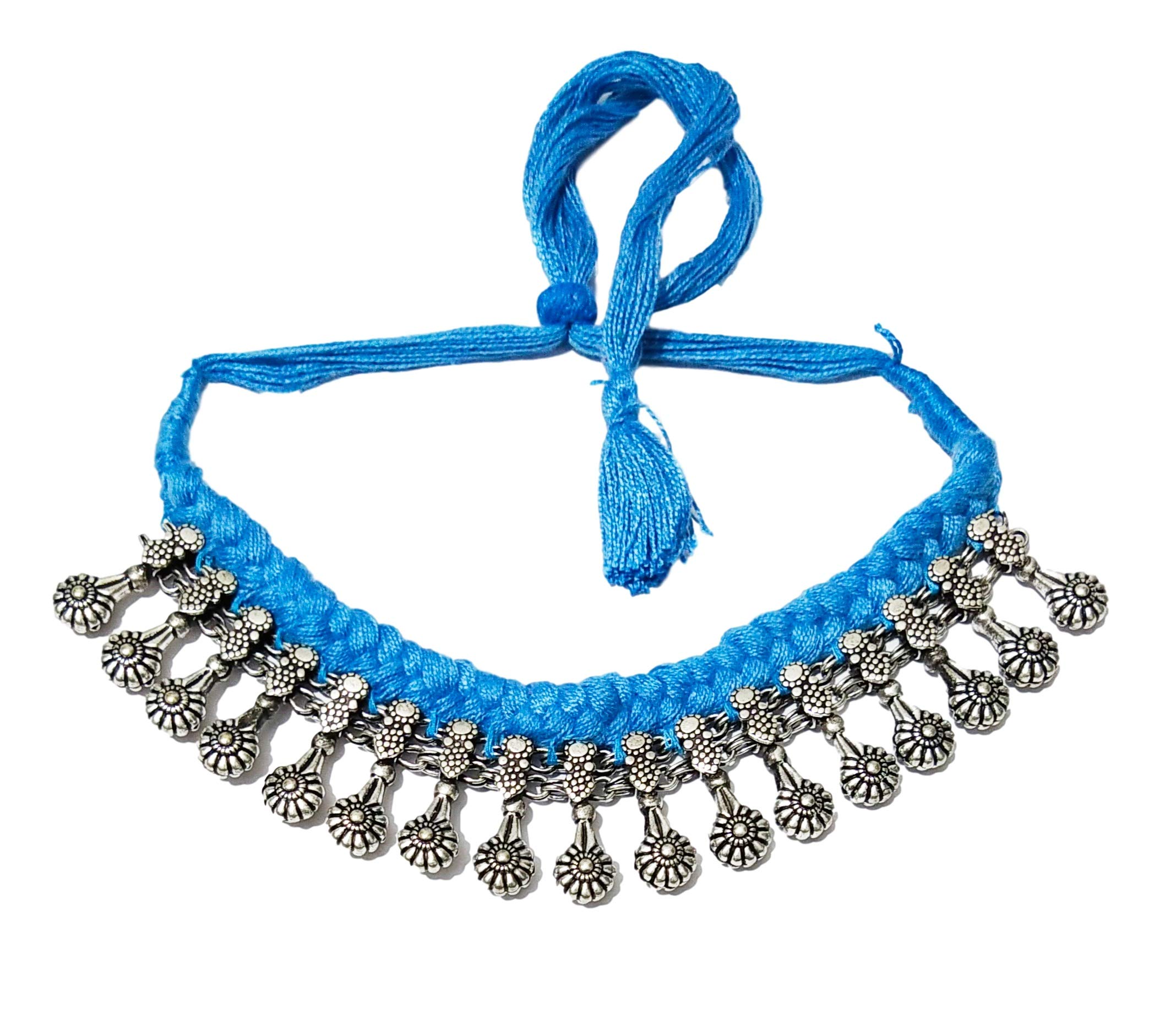 athizay Necklace oxidised Silver Within Cotton Thread chokers Designer Beads for Women Ethnic Navratri Festive Jewelry