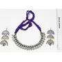 Stylish Oxidized Silver necklace set for women. Antique finish Silver finish jewellery set with dangle earrings which are in dangler fashion.Party wear necklace jewelleryMatinee Necklace set with shape pendant with silver beaded and stud earring set women fashion jewellery for daily and office wear. Stylish Silver necklace set for women.The necklace is made in Jaipur Rajasthan. The necklace is made in Jaipur. The oxidized silver necklace design is such that it is adjustable thus you can make it a collar choker or princess. Antique silver finish jewelry set for wedding party. Such a design looks extremely good on Bib Bandeau tube top and off shoulder dresses. Its a stylish statement item for any Black violet Red or white dress. It will suit a pink couture as well. The necklace should not be worn with round neck t shirt as it would loose its appearance. The big silver enhances he beauty of the necklace. From a protection perspective please make sure that youo wear the necklace last after make up is fully done. Once the party is over the necklace should be the first item to be taken off. This will ensure its longevity. Also protect it from water direct spray of deodorant. The earrings are made up of German silver and are long tassel for a statement look. Oxidized silver stylish women fashion jewellery set. Great go neck piece for Navratri diwali festival dresses. The necklace is perfect to wear along with Bib Bandeau Tube top and any off shoulder dress. The necklace is great to be worn on social outings of formal dressing as well. From a protection perspective please make sure that youo wear the necklace last after make up is fully done. Once the party is over the necklace should be the first item to be taken off. This will ensure its longevity. Also protect it from water direct spray of deodorant.