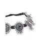 PRODUCT DETAILS This jewellery set consists of a necklace and earrings Silver-plated Green and red kundan-studded necklace secured with drawstring closure A pair of matching stud earrings secured with post and back closure Size & Fit Necklace dimensions: 34.5 cm x 4.5 cm (Length x Width) Earrings dimensions: 3.2 cm x 2.8 cm (Length x Width) Material & Care Material: German Silver Plating: Silver-Plated Stone Type: KundanCare Instruction Wipe your jewellery with a soft cloth after every use Always store your jewellery in a flat box to avoid accidental scratches Keep sprays and perfumes away from your jewellery Do not soak your jewellery in water Clean your jewellery using a soft brush dipped in jewellery cleaning solution only