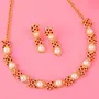 Gehena Gold Plated Blossom Pearl Designer Necklace Set With Ruby Crystals For Girls and Women