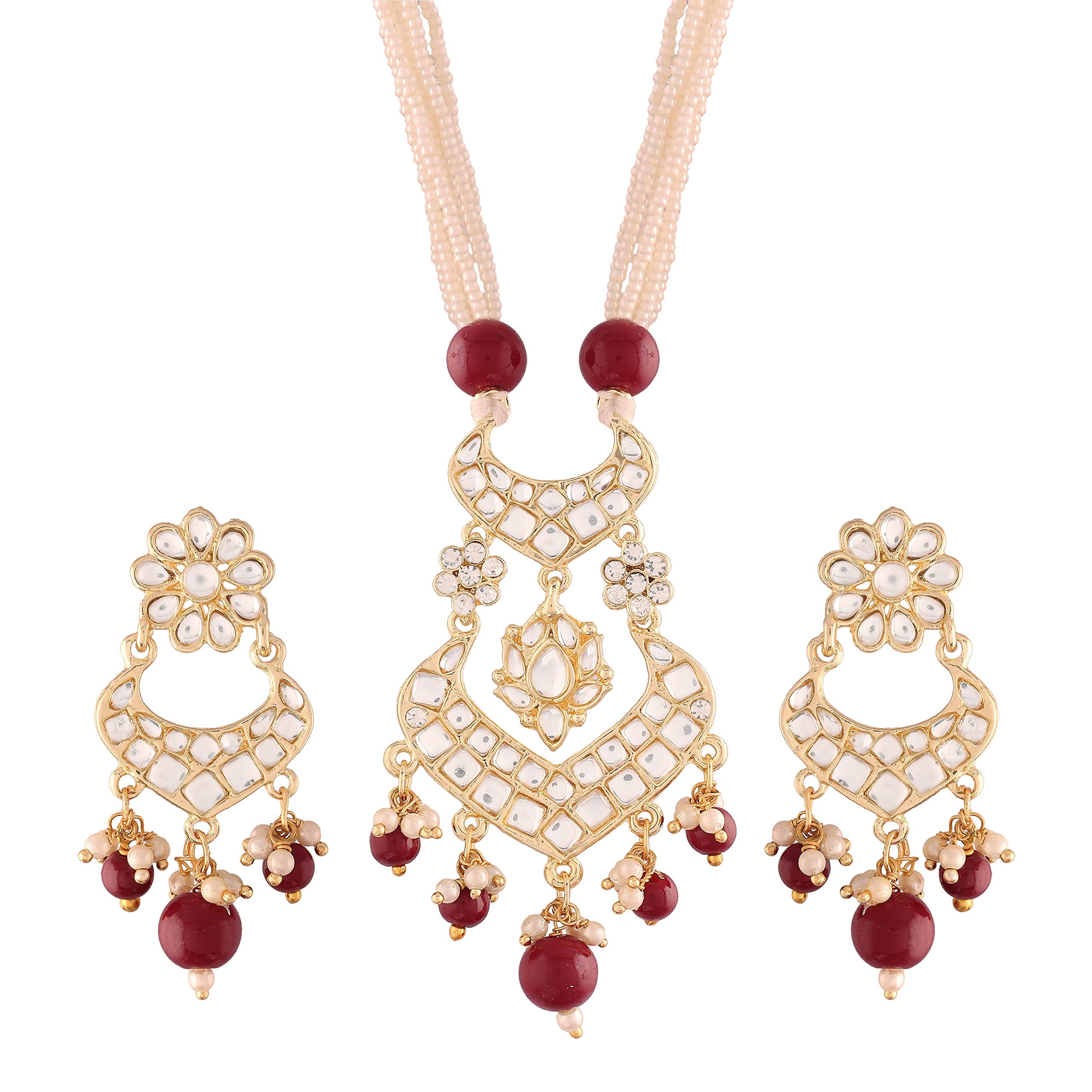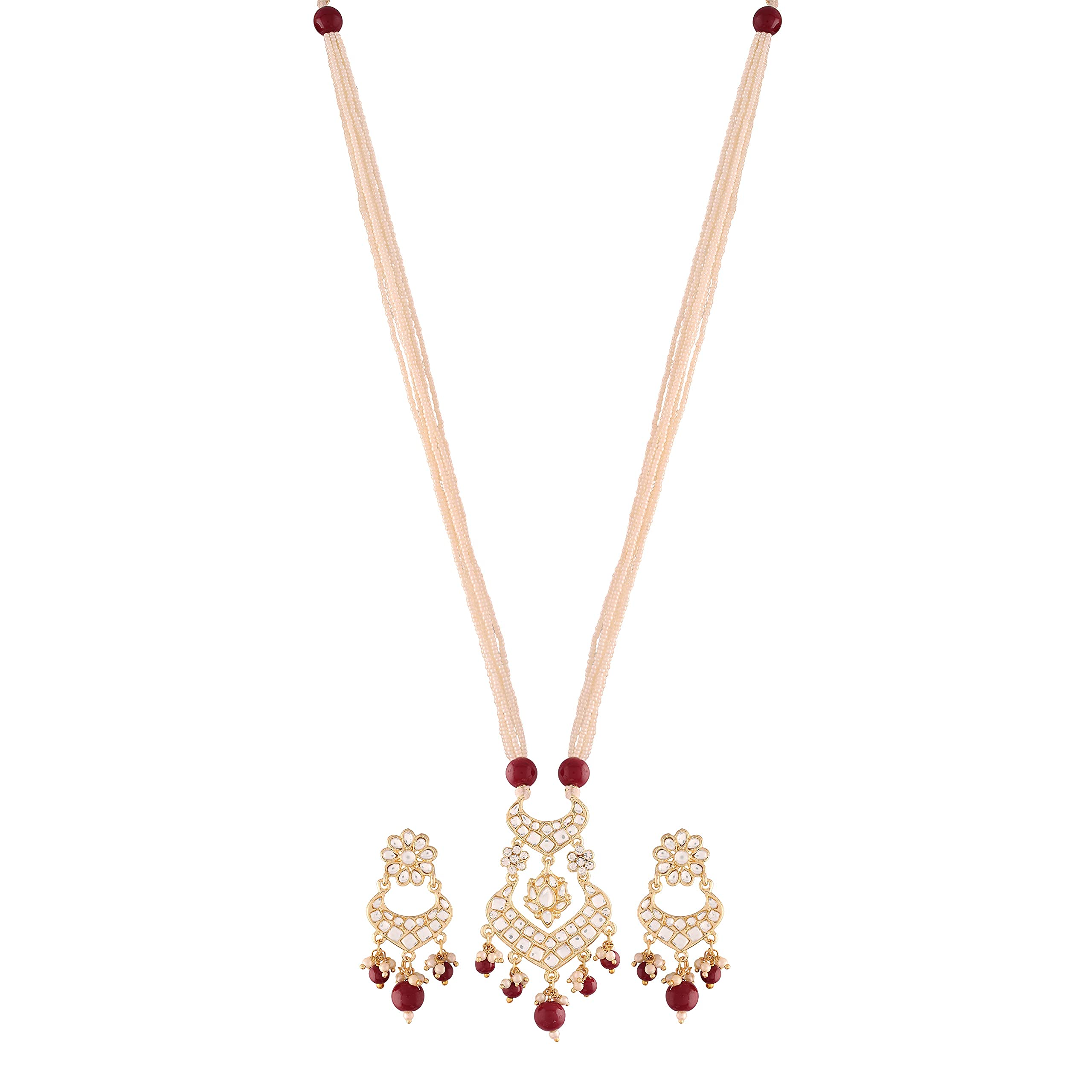 I Jewels 18k Gold Plated Ethnic Kundan Pearl Studded Long Necklace Set For Women (ML294M)