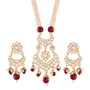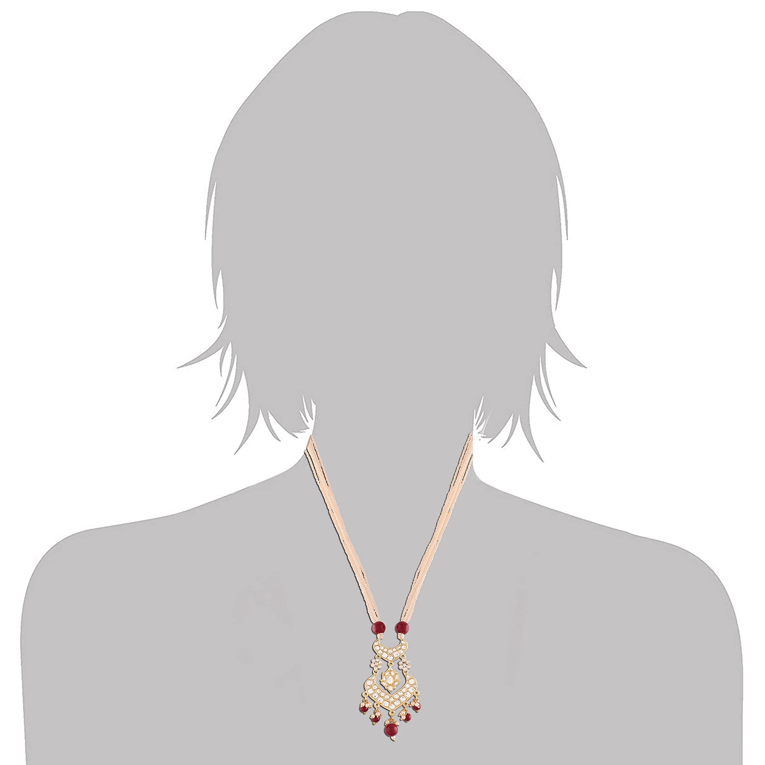Gold-plated Maroon Long necklace has beaded detailing. Secured with a drawstring closure. A pair of matching earrings each secured with a post-and-back closure. Matching maang tika secured with a hook closure