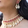 Pearl studded Choker necklace comes along with earrings and maangtikka. This captivating set is a great gifting option and is a perfect pick to add to your jewelry collection. You can style it with ethnic or western clothing.