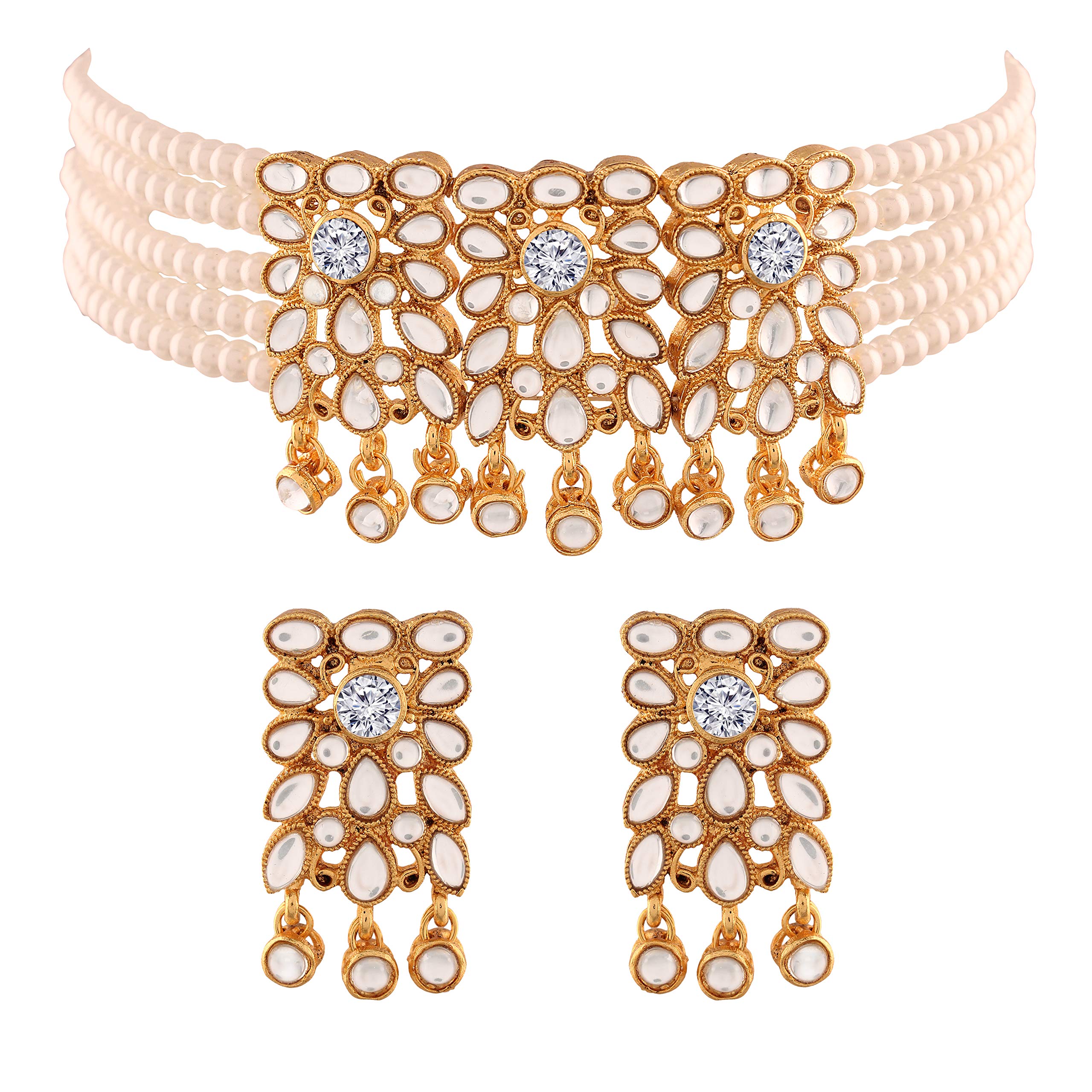 I Jewels 18K Gold Plated Traditional Kundan Studded Pearl Choker Necklace Jewellery Set for Women (ML236)