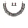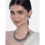 I Jewels 18K Silver Oxidised Indian Traditional Coin Necklace Jewellery With Earrings For Women (MC062-63)