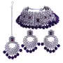 This jewellery set is crafted in 18K gold plated traditional light weight beaded choker set glided with moti work. The necklace feature beads & moti work in it and is secured with a drawstring closures. Style this necklace set with a saree or a salwar suit to enhance the look.