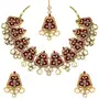 I Jewels Exklusive Gold Plated Kundan & Meenakari Bridal Necklace Set with Earrings & Maang Tikka for Women