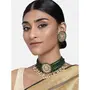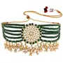 DIMENSIONS: Necklace Length - 28 Cm x Width - 7 Cm Earring Height -4 Cm x Width - 4 Cm. This jewellery set is crafted in gold plated traditional light weight beaded choker set glided with moti work. The necklace feature beads & moti work in it and is secured with a drawstring closures. Style this necklace set with a saree or a salwar suit to enhance the look.