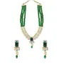 The Gold Plated Traditional White Kundan Studded Multi Layered Pearl Necklace Jewellery Set with Dangle Earrings is a beautiful and elegant piece of Indian jewelry. The set includes a multi-layered necklace and matching dangle earrings both adorned with white Kundan stones and pearl beads. The necklace features multiple layers of pearl beads with the top layer being a choker-style design and the lower layers gradually becoming longer. The Kundan stones are set in gold-plated bases and are strategically placed throughout the necklace adding a touch of sparkle and glamour. The combination of pearls and Kundan stones creates a classic and timeless design that is perfect for weddings parties and other special occasions. The matching dangle earrings feature a similar design to the necklace with white Kundan stones and pearl beads dangling from a gold-plated base. The earrings are perfect for those who prefer a more traditional style of Indian jewelry with a touch of modern elegance. Overall this set is a beautiful and versatile addition to any collection. It can be worn with traditional Indian attire such as a saree or lehenga or with modern western wear such as a cocktail dress or gown. The intricate design and high-quality craftsmanship make it a piece that can be cherished for years to come.
