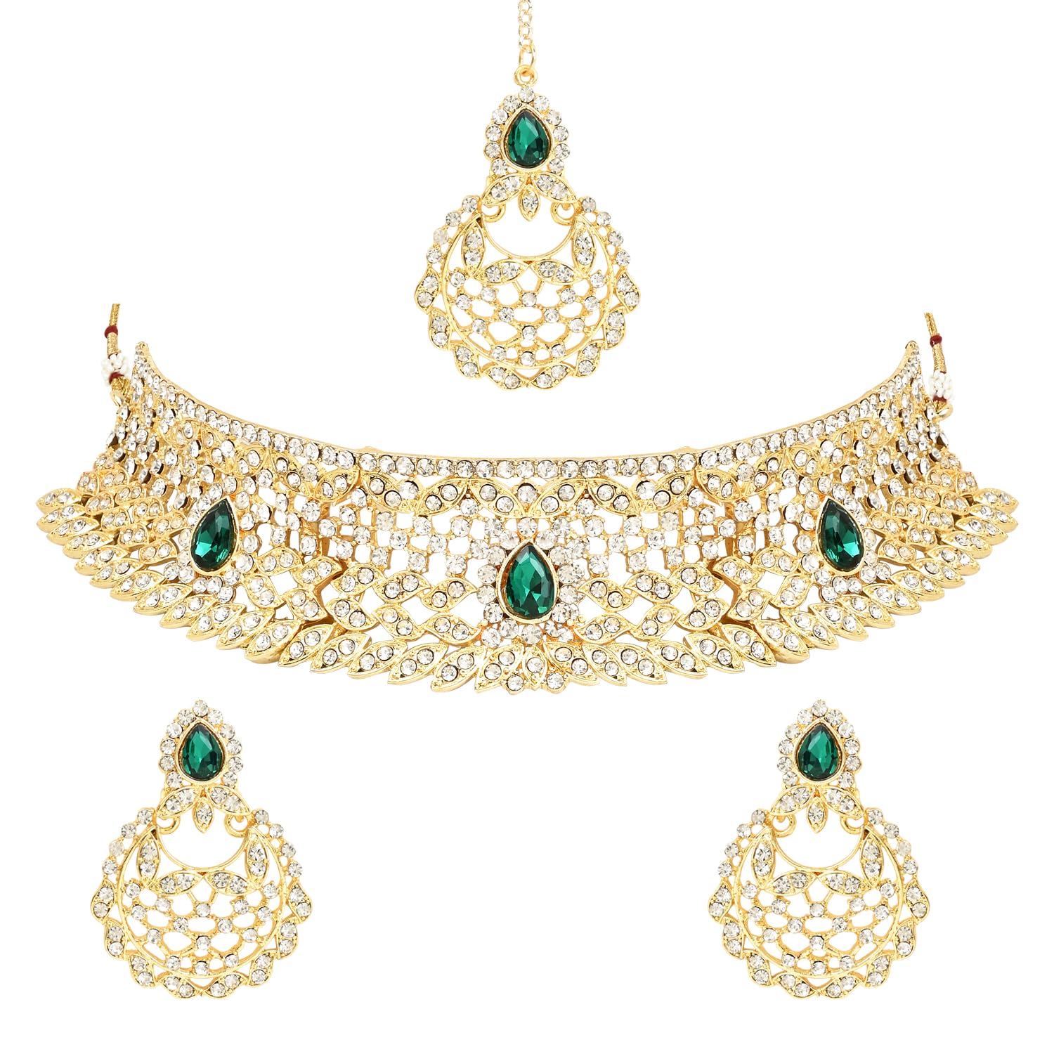 I Jewels Gold Plated Traditional Design Stone Work Choker Necklace Jewellery Set With Chandbali Earring & Maang Tikka For Women/Girls (M4170WG)