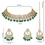 I Jewels Gold Plated Traditional Floral Kundan Pearl Choker Necklace Jewelry Earrings & Maang tikka Set For Women