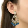 The gold-plated choker necklace set consists of a necklace a pair of earrings and a maang tikka. The necklace features kundan studded with pearl beaded in it giving it an elegant and traditional look. The stones and pearls are set in a beautiful pattern adding a touch of sophistication and grace to the necklace. The necklace is secured with drawstring closures which make it easy to adjust the size to fit comfortably around the neck. This is an important feature as it ensures that the necklace will be comfortable to wear for extended periods of time. The necklace is secured with drawstring closures which make it easy to adjust the size to fit comfortably around the neck. This is an important feature as it ensures that the necklace will be comfortable to wear for extended periods of time. The earrings and maang tikka are also adorned with stones and pearls which match the pattern of the necklace. The earrings have a beautiful design which makes them easy and comfortable to wear. The maang tikka is a traditional Indian hair accessory that can be worn with the necklace and earrings to complete the look.