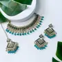 The gold-plated choker necklace set consists of a necklace a pair of earrings and a maang tikka. The necklace features kundan studded with pearl beaded in it giving it an elegant and traditional look. The stones and pearls are set in a beautiful pattern adding a touch of sophistication and grace to the necklace. The necklace is secured with drawstring closures which make it easy to adjust the size to fit comfortably around the neck. This is an important feature as it ensures that the necklace will be comfortable to wear for extended periods of time. The necklace is secured with drawstring closures which make it easy to adjust the size to fit comfortably around the neck. This is an important feature as it ensures that the necklace will be comfortable to wear for extended periods of time. The earrings and maang tikka are also adorned with stones and pearls which match the pattern of the necklace. The earrings have a beautiful design which makes them easy and comfortable to wear. The maang tikka is a traditional Indian hair accessory that can be worn with the necklace and earrings to complete the look.