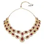 Enhance your traditional charm with the gold plated stone necklace set. This captivating jewelry set which includes a necklace matching earrings and a maang tikka exudes grace and elegance. Crafted with meticulous attention to detail it features exquisite stone studded designs that shimmer and shine making it a perfect choice for women and girls who appreciate classic Indian jewelry. Elevate your style and create a lasting impression with the necklace set an ideal accompaniment to your ethnic ensembles.