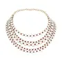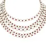The gold-plated choker necklace set consists of a necklace. The necklace features kundan studded with pearl beaded in it giving it an elegant and traditional look. The and pearls are set in a beautiful pattern adding a touch of sophistication and grace to the necklace. The necklace is secured with drawstring closures which make it easy to adjust the size to fit comfortably around the neck. This is an important feature as it ensures that the necklace will be comfortable to wear for extended periods of time. The necklace is secured with drawstring closures which make it easy to adjust the size to fit comfortably around the neck. This is an important feature as it ensures that the necklace will be comfortable to wear for extended periods of time. The earrings and maang tikka are also adorned with stones and pearls which match the pattern of the necklace. The earrings have a beautiful design which makes them easy and comfortable to wear. The maang tikka is a traditional Indian hair accessory that can be worn with the necklace and earrings to complete the look.