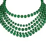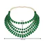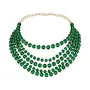 The gold-plated choker necklace set consists of a necklace. The necklace features kundan studded with pearl beaded in it giving it an elegant and traditional look. The and pearls are set in a beautiful pattern adding a touch of sophistication and grace to the necklace. The necklace is secured with drawstring closures which make it easy to adjust the size to fit comfortably around the neck. This is an important feature as it ensures that the necklace will be comfortable to wear for extended periods of time. The necklace is secured with drawstring closures which make it easy to adjust the size to fit comfortably around the neck. This is an important feature as it ensures that the necklace will be comfortable to wear for extended periods of time. The earrings and maang tikka are also adorned with stones and pearls which match the pattern of the necklace. The earrings have a beautiful design which makes them easy and comfortable to wear. The maang tikka is a traditional Indian hair accessory that can be worn with the necklace and earrings to complete the look.