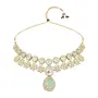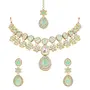 This choker necklace earrings and Maang Tikka set epitomizes traditional Indian jewelry craftsmanship at its finest. It's a nod to the timeless charm of Kundan and stone-studded designs that have been cherished for generations. The centerpiece of this set is the intricate Kundan work. Carefully selected Kundan stones are arranged in an elegant pattern surrounded by smaller hand-set stones that add a dazzling brilliance. The intricate details reflect the artistry of traditional Indian jewelry design. Whether it's your wedding day a festival or a special gathering this set is designed to make you stand out. It's a perfect choice for any traditional event radiating elegance and opulence.