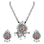 HomeFashionNecklaceI Jewels Navratri Ethnic Stylish Silver Oxidised Krishna Murli and Feather Long Necklace With Earring Jewellery Set for Women And Girls (MC152OX)