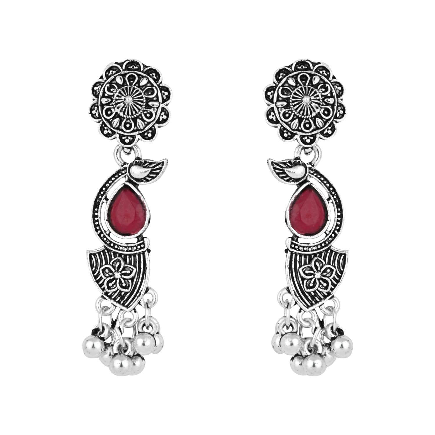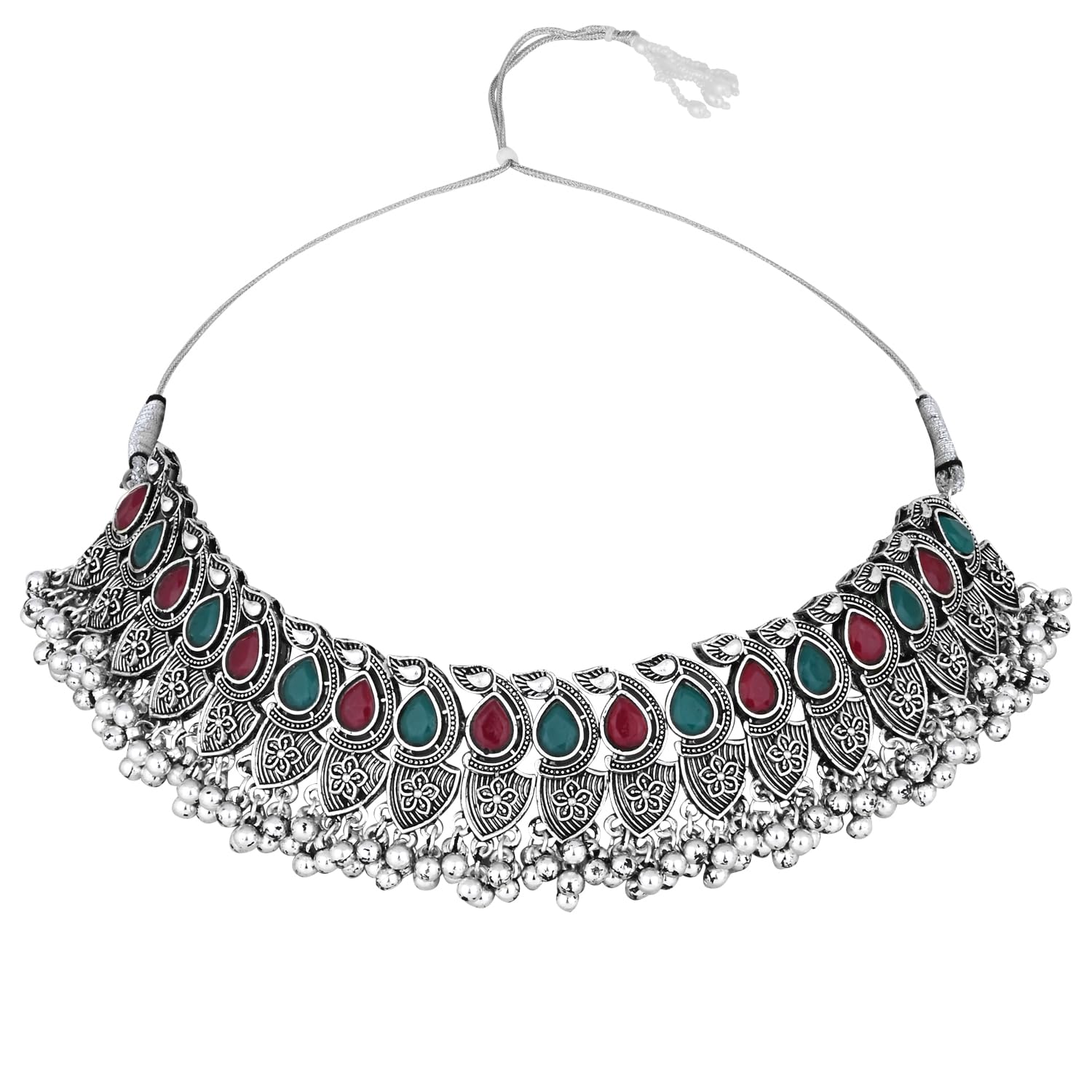 I Jewels Navratri Silver Oxidised Afghani Ghungroo Drop Choker Necklace Jewellery Set With Earrings For Women