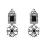 I Jewels Silver Oxidised Square Shaped Floral Design Choker Necklace Jewellery Set With Earrings For Women (MC201Z)