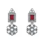 I Jewels Silver Oxidised Square Shaped Floral Design Choker Necklace Jewellery Set With Earrings For Women (MC201Z)