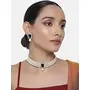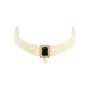 DIMENSIONS: Necklace Length - 26 cm x Width - 1.5 cm Earring Height - 3.5 cm x Width - 2 cm Weight - 65 gms. This stunning choker necklace is a delicate masterpiece that graces the neck with its intricate design. Adorned with carefully chosen stones and lustrous pearls it effortlessly combines traditional allure with a modern aesthetic. The gold-plated links elegantly embrace the neck reflecting a blend of heritage and contemporary elegance. The stone work on the necklace adds a captivating sparkle enhancing its overall allure. Adjust the length of the necklace to suit your preference and outfit ensuring a comfortable and perfect fit. Whether you're attending a wedding a festive celebration or a traditional gathering this versatile jewellery set complements a variety of ensembles. It arrives elegantly packaged making it an ideal gift for yourself or a loved one.