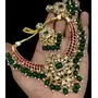 Unveil timeless elegance with this exquisite Kundan Choker Necklace Set, a perfect blend of traditional craftsmanship and royal aesthetics. This gold-plated masterpiece is adorned with sparkling Kundan stones, deep green emerald beads, and radiant ruby accents, creating a mesmerizing contrast. The set includes a beautifully detailed choker necklace with matching earrings, ideal for brides, weddings, and festive occasions.Designed to complement silk sarees, lehengas, and Anarkali suits, this handcrafted jewelry enhances your grace and sophistication. Whether you're a bride-to-be or attending a grand celebration, this regal choker adds a touch of luxury to your ensemble.? Premium Kundan work with gold plating for a royal touch? Lustrous emerald and ruby beads for a statement look? Perfect for weddings, parties, and traditional festivals? A must-have for lovers of classic Indian jewelryDrape yourself in tradition and luxuryorder now to own this stunning choker set!