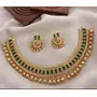 Elevate your ethnic look with this stunning handcrafted gold-plated choker necklace set, featuring rich green stones and intricate bead detailing. Inspired by traditional Indian jewelry, this ethnic choker necklace is designed to exude royalty and elegance, making it a perfect choice for weddings, festivals, and special occasions. Key Features:? Premium gold-plated finish for a luxurious appeal? Embellished with high-quality green stones for a regal touch? Traditional temple-style beadwork enhances its elegance? Matching earrings included for a complete festive look? Perfect for bridal wear, festive celebrations, and party attirePair this exquisite Indian choker necklace with sarees, lehengas, or Anarkali suits to create a mesmerizing look. Shop now and embrace the timeless beauty of traditional Indian craftsmanship!Let me know if you'd like me to tweak the wording or add more details!