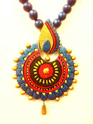 100% handmade terracotta lightHand Painted jewellery set for women. This jewellery set is perfect for any occasion like party wedding casual office outdoor travel function etc. Acrylic paint of this jewellery avoids fading. Made up of natural clay makes it eco friendly . This jewellery is perfectly designed to match with traditional Indian wear.
