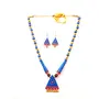 Karru Krafft Women's Handcrafted Terracotta Necklace Set Traditional Blue Hand Painted Jewellery Set