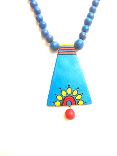 Karru Krafft Women's Handcrafted Terracotta Necklace Set Traditional Blue Hand Painted Jewellery Set