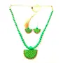 Karru Krafft Women's Handcrafted Terracotta Necklace Set Traditional Green Hand Painted Jewellery Set