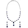 • Metal : ; Size : Necklace : 16 Inches ; Earrings : 5cm x 1cm ; Plating : Rhodium Color; Stone : Crystal ; Stone Color : Dark Blue White