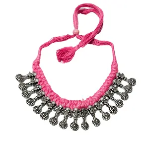 athizay oxidized silver choker pink...