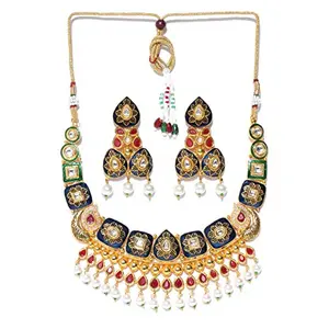 PRIYAASI Gold-Toned and Navy Kundan...