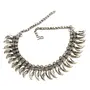 Choker Necklace with Antique Texture long beads pattern metal beads in brass metal. Tribal design. Adds to the beauty over time. 14 Inches long Heavy metal beads Embellishment.silver Oxidized metal.Terrific Party wear. Looks magnificent with any dress. Be assured for quality with athizay. Great gift for girls & women. Think your style Make your style..