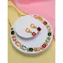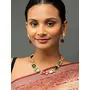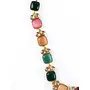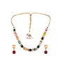 This jewellery for women is made of brass metal and is gold-. This jewellery set consists of drop earrings and necklace for women. The necklace can be sed with a drawstring closure. This jewellery for women has multi-coloured stones. This jewellery set will look great with ethnic and occasion wear.