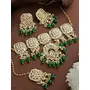 Priyaasi Green Floral Kundan Golden ColorJewellery Set with Maagtikka