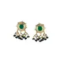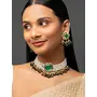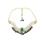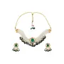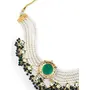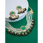 This jewellery set for women is made of brass and is gold-. The necklace can be sed with a drawstring closure. This multi-layered kundan jewellery set for women is made of green stones and pearls. This jewellery set for women will look great with ethnic and bridal wear.