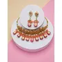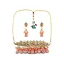 This choker jewellery set for women is made of brass and is gold-. The necklace can be sed with a drawstring closure. This jewellery set for women is made of multi-coloured stones. This jewellery ser for women will look great with ethnic and bridal wear.